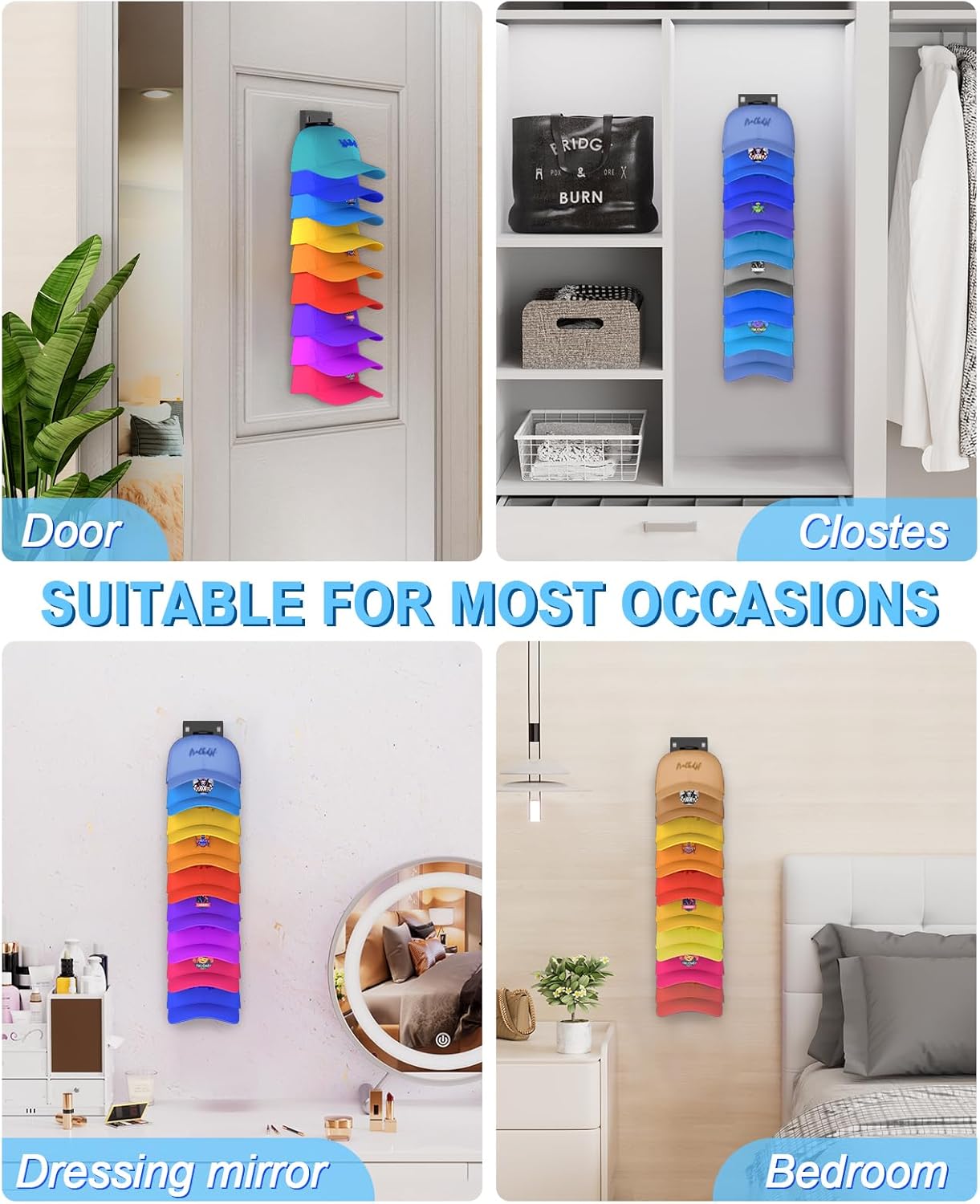 Constructed with strong adhesive backing, these hat racks can be easily mounted on walls, closet doors, or in bedrooms, providing a convenient and efficient way to store up to 18 hats in one place. The multilayer design allows you to display your hat collection in a neat and organized manner, making it easy to find the perfect hat for any occasion.